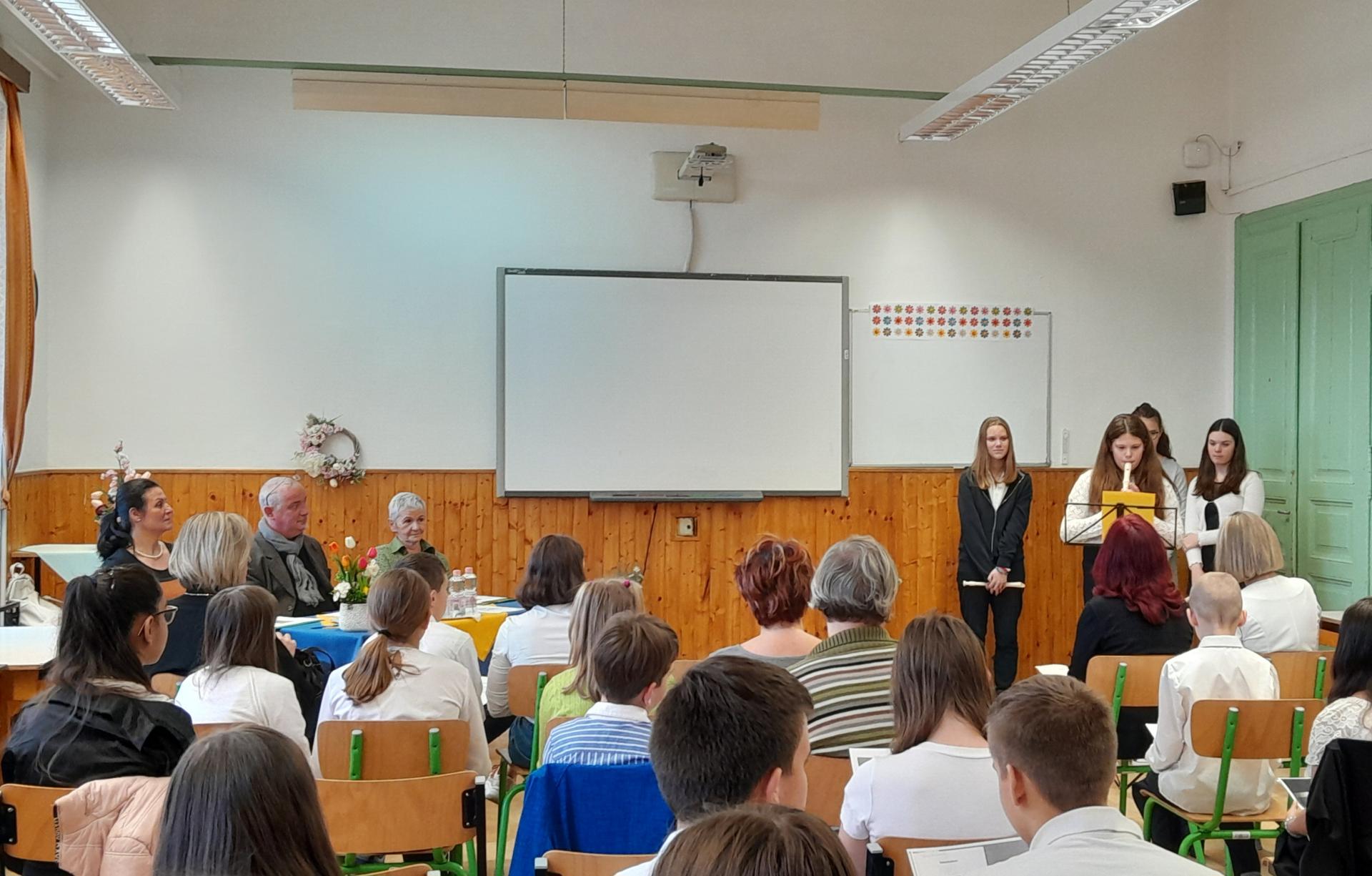 Iskolánk immár ötödik alkalommal rendezett térségi német nyelvi versmondó versenyt. A megmérettetésen a tanulók három kategóriában – 3-4. osztály, 5-6. osztály, 7-8. osztály – vetélkedtek egymással. A program során hét iskola 35 tanulója mutatta be verstudását német nyelven. A verseny célja kettős: egyrészt a német nyelv és kultúra népszerűsítése, másrészt a versmondás megszerettetése.