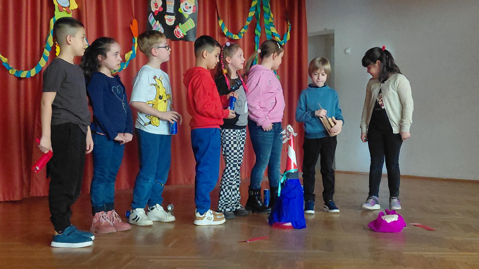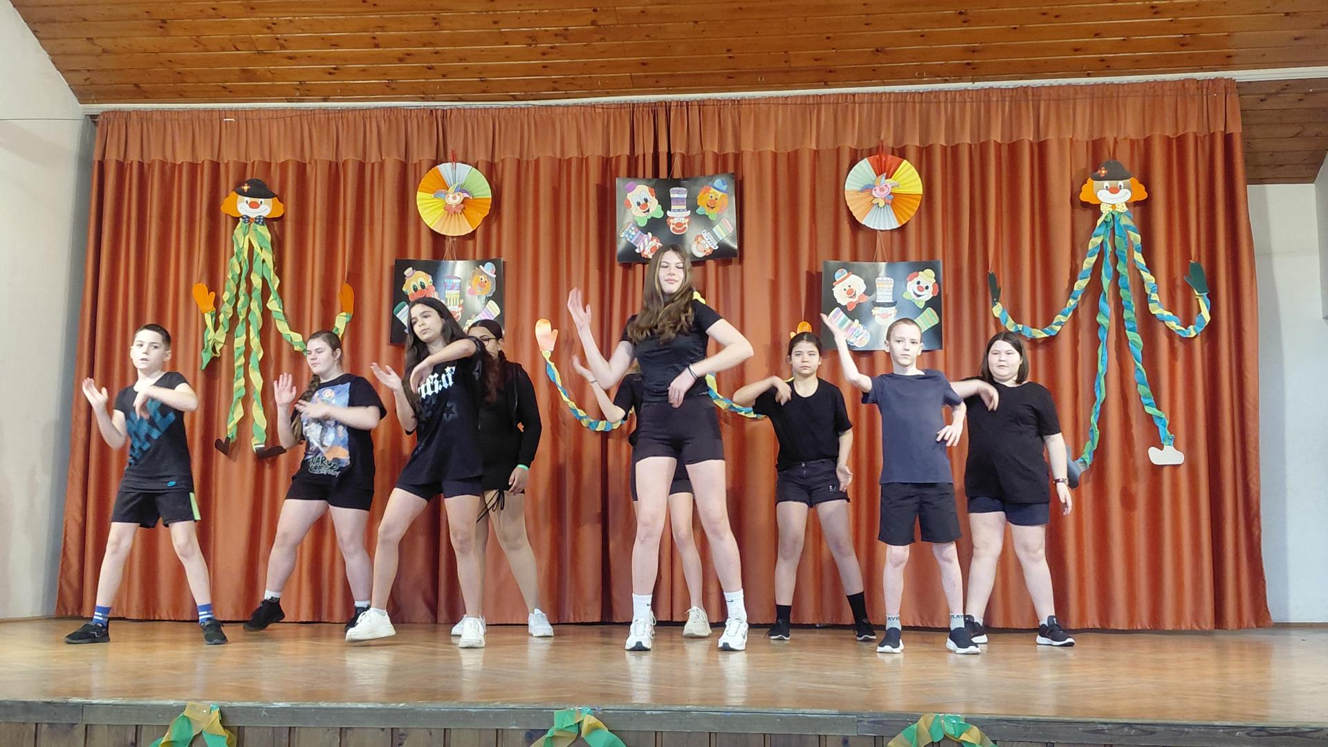 Az idei tanévben február 13-án, pénteken rendeztük meg intézményünkben a hagyományos farsangi bált, amely a babonák helyett az önfeledt szórakozásról szólt. A tél elűzése érdekében minden osztály színvonalas produkcióval készült; a második évfolyamos tanulók a hagyományőrzés jegyében még egy kiszebábut is készítettek. A jelmezes felvonulás idén is a diákok kreativitásáról és ötletességéről tanúskodott.