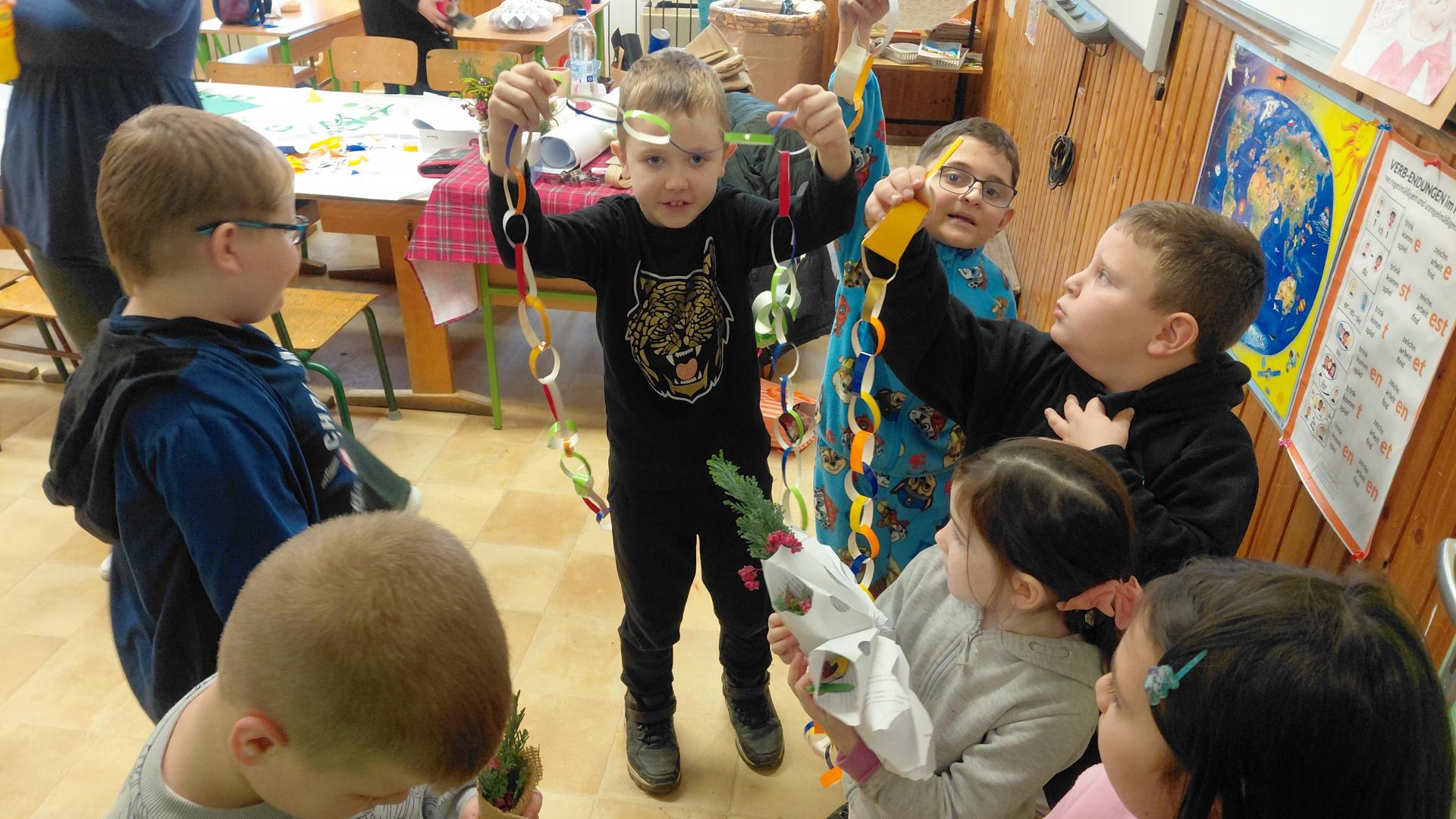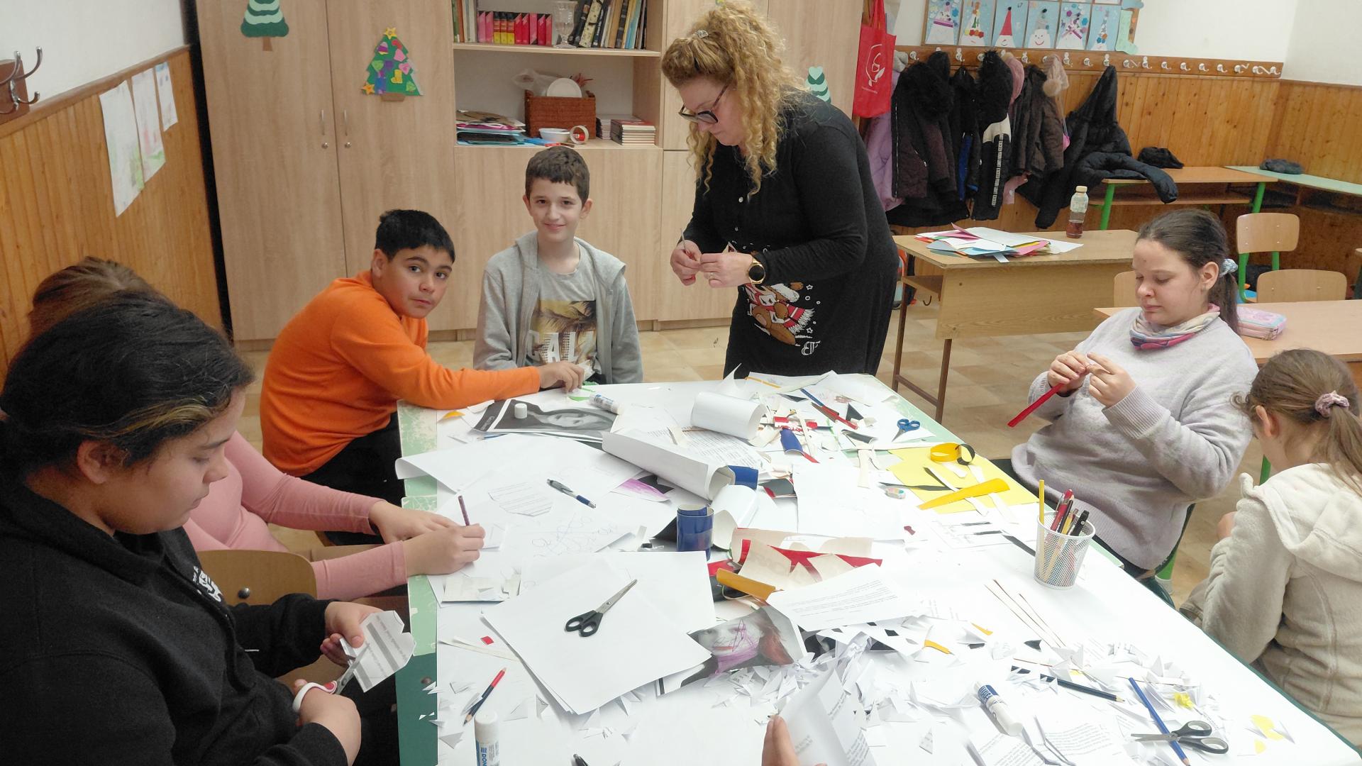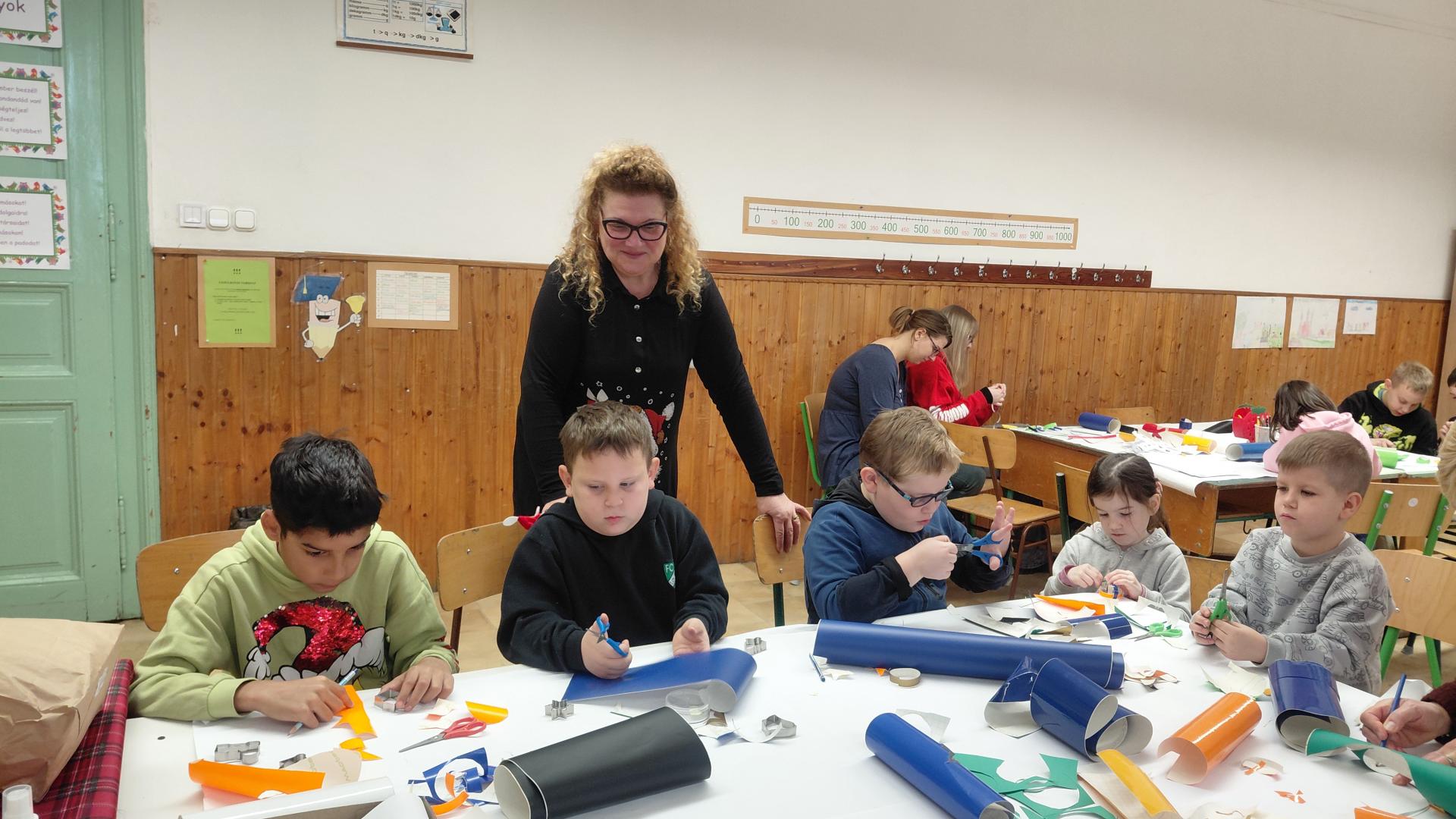 A kézműves foglalkozások fénypontja a quilling művész volt, akinek az alkotásait megcsodálhatták a gyerekek, majd segítséggel el is készíthettek apró virágokat, hópelyheket.