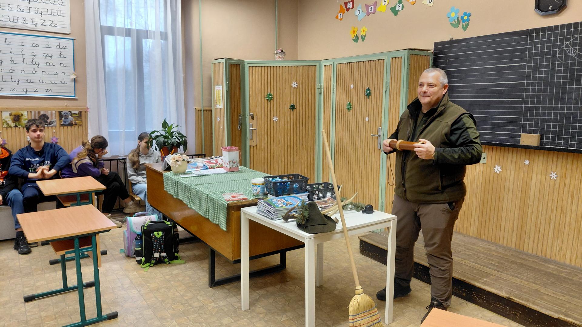 A vadász szakmájának szépségeit és nehézségeit mutatta be interaktív előadásában. A „Miértek?” és a „Hogyanok?” megválaszolása mellett a gyerekek eljátszhatták egy szarvas elejtését, és a vadásszá avatás rituáléjában is részesülhettek a kiválasztottak.