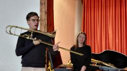 Volt egy kis zenetörténet, közös éneklés, dalfelismerés, hangszeres előadásban: szóló, duó, trió. Diákjaink csillogó szemekkel figyelték a mini koncertet.