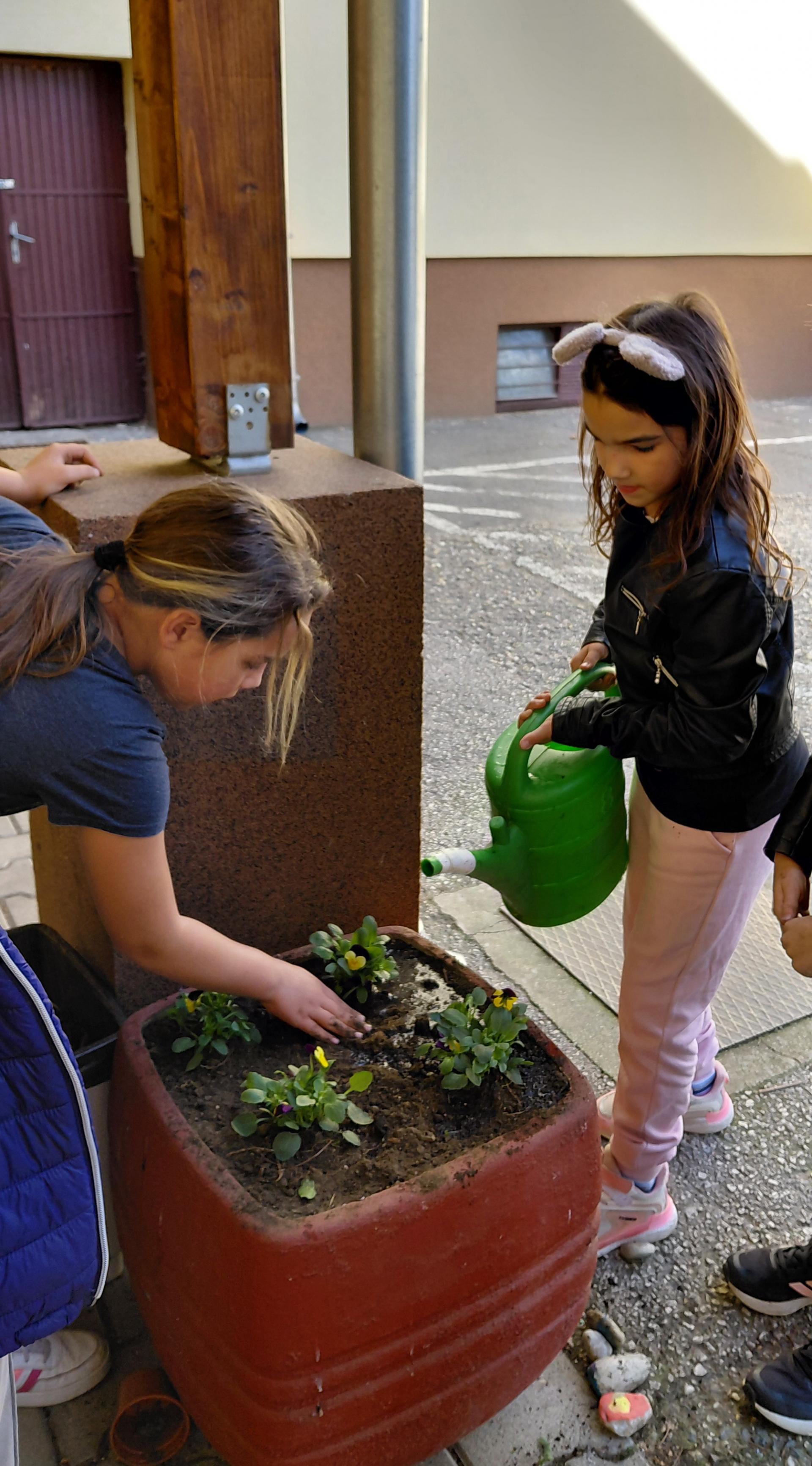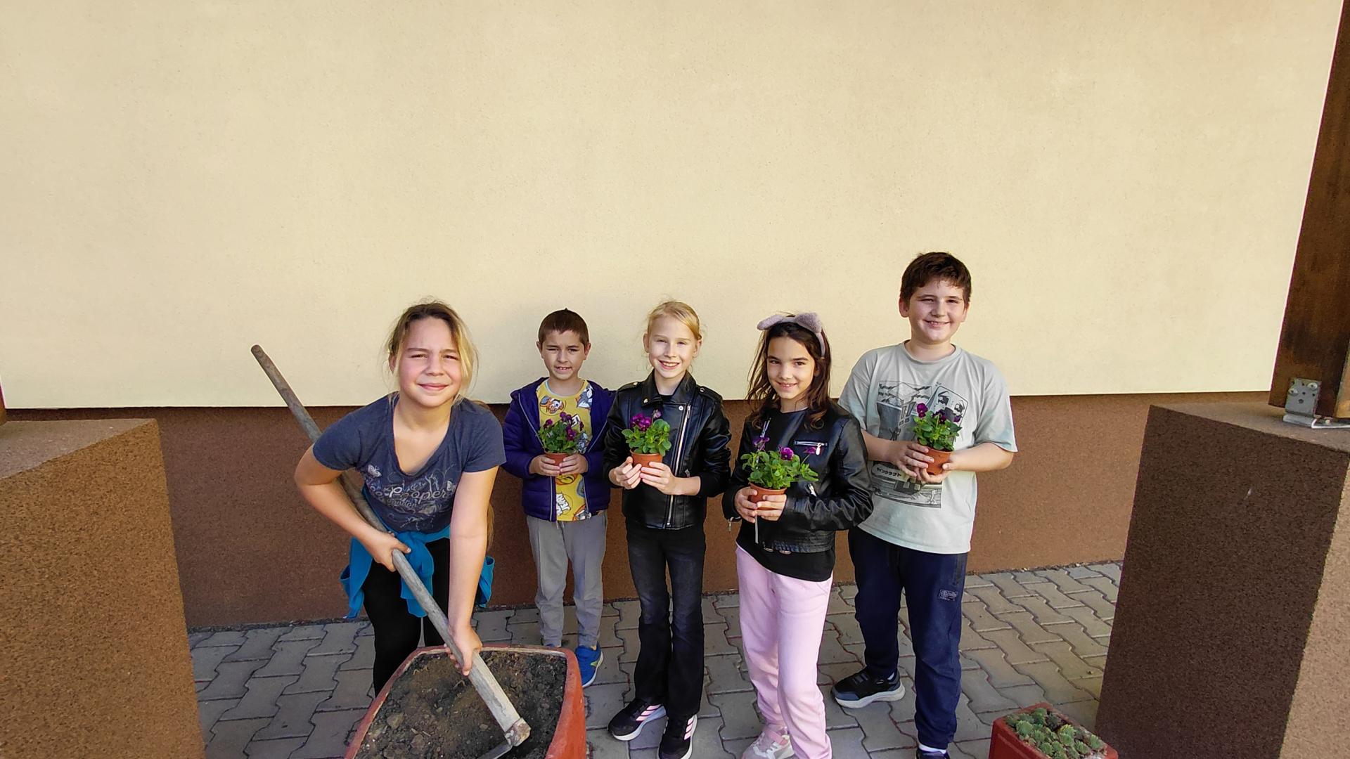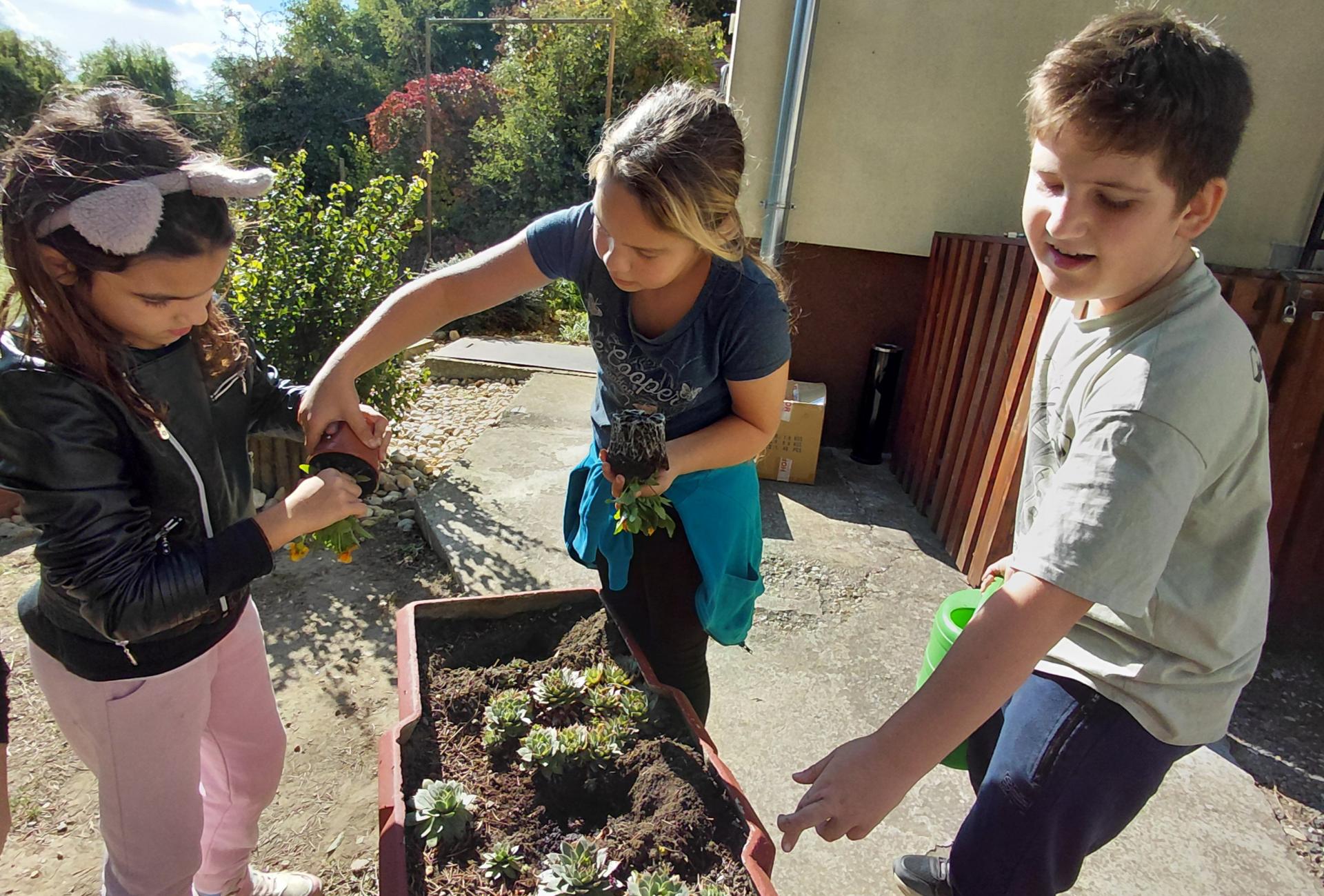 A harmadik és negyedik osztályos tanulók nagy szeretettel és szakértelemmel ültették el a virágokat az iskola udvarán, bízva abban, hogy tavaszig vidámságot hoznak a szürke hétköznapokba.